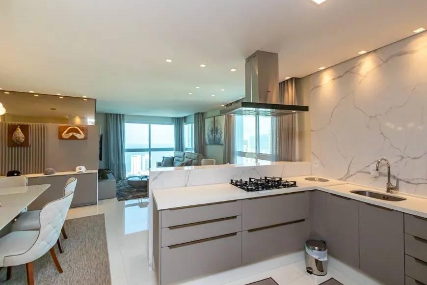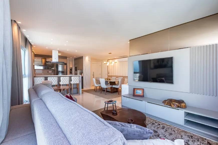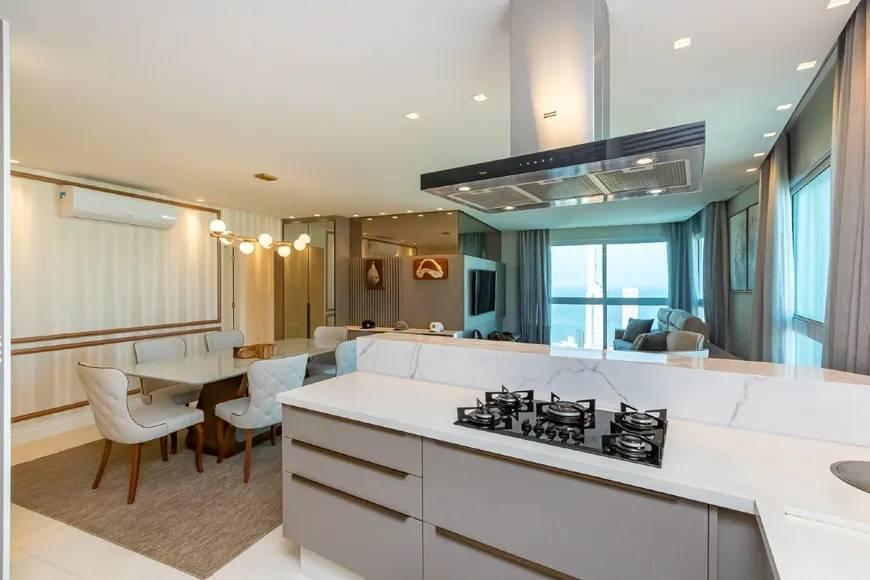 Este luxuoso apartamento mobiliado em Balneário Camboriú é um verdadeiro refúgio à beira-mar, com 3 suítes com vista para o oceano, 2 vagas de garagem e um amplo living em conceito aberto com cozinha americana e espaço gourmet com churrasqueira a gás.