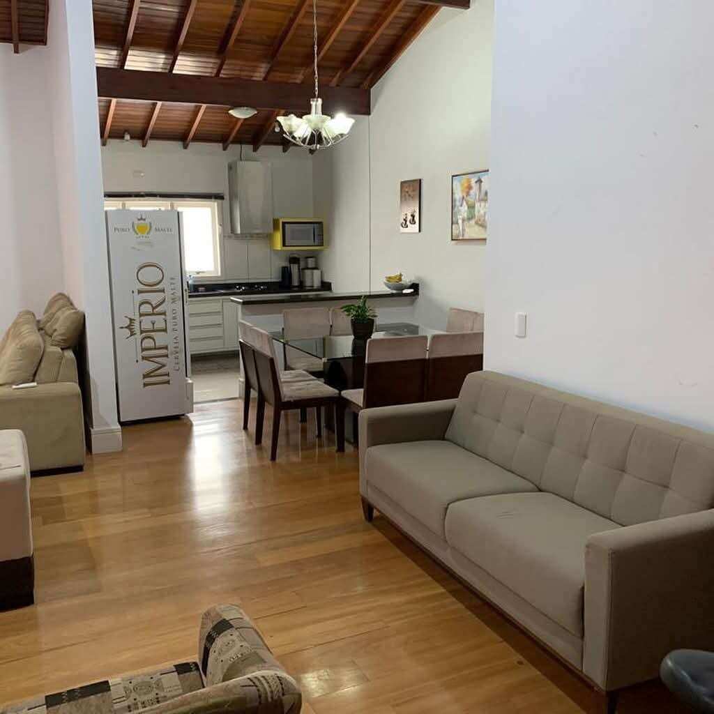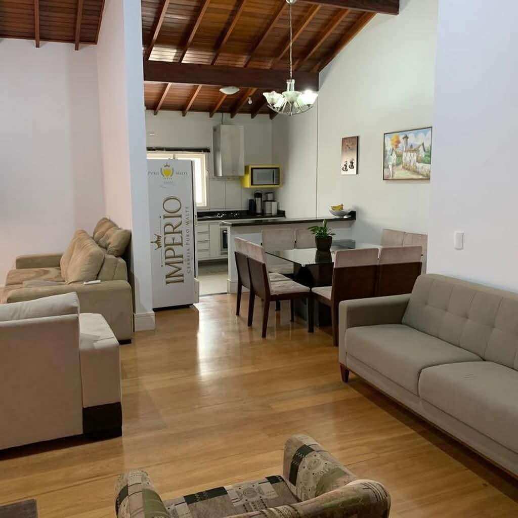 Casa com 1.300m² de terreno e aproximadamente 400m² de área construída. São 3 dormitórios, sendo 2 suítes, todos com ar-condicionado e armários embutidos. A sala também é climatizada.