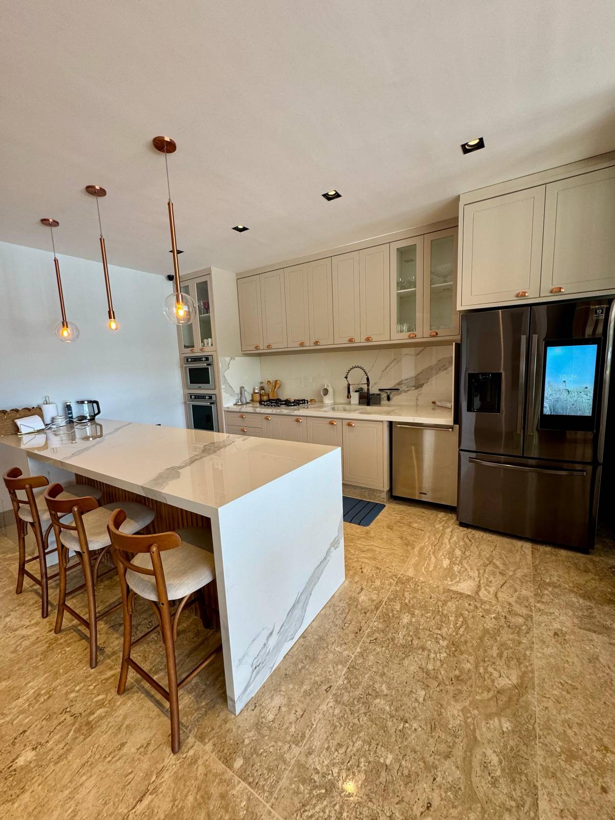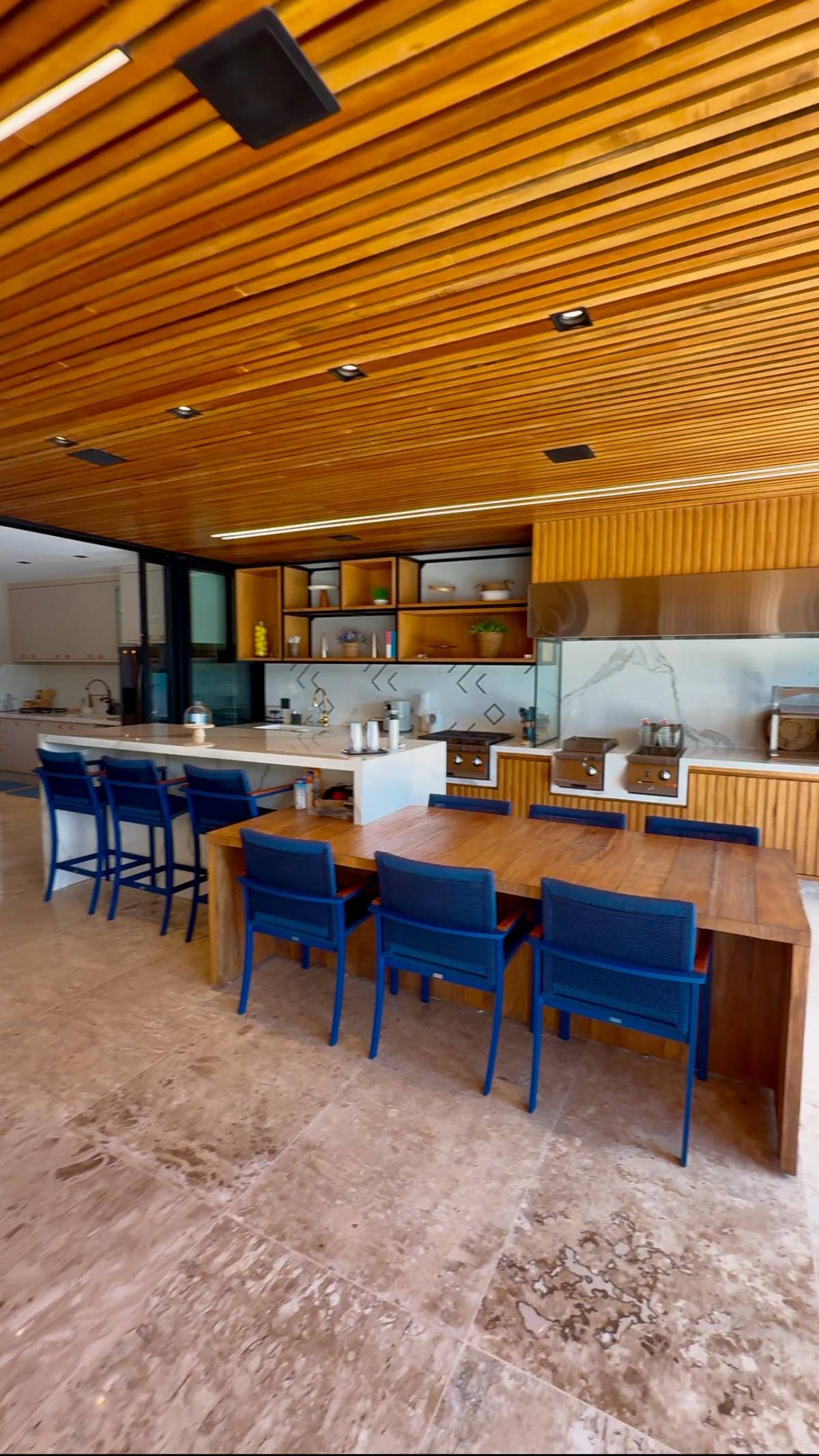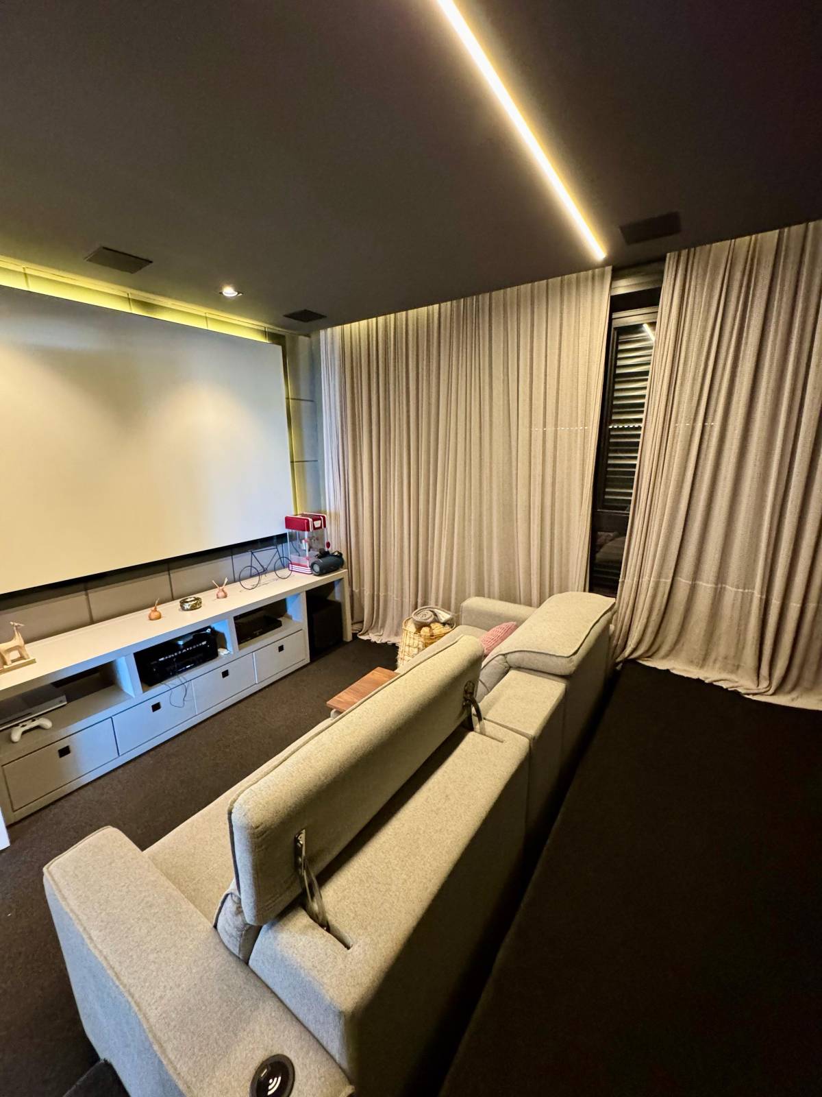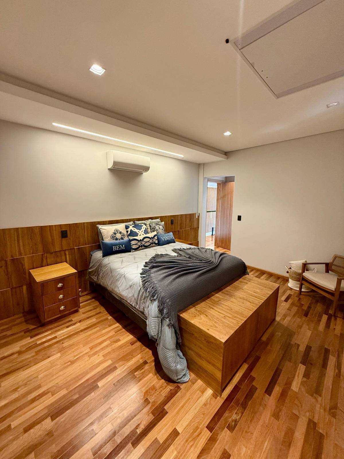 A casa dispõe de 5 amplas suítes, todas com vista privilegiada para a água, além de uma sala de cinema totalmente equipada. Os ambientes são integrados, destacando a cozinha completa conectada ao espaço gourmet, uma sala de visitas e uma sala de jantar que harmonizam elegância e funcionalidade.