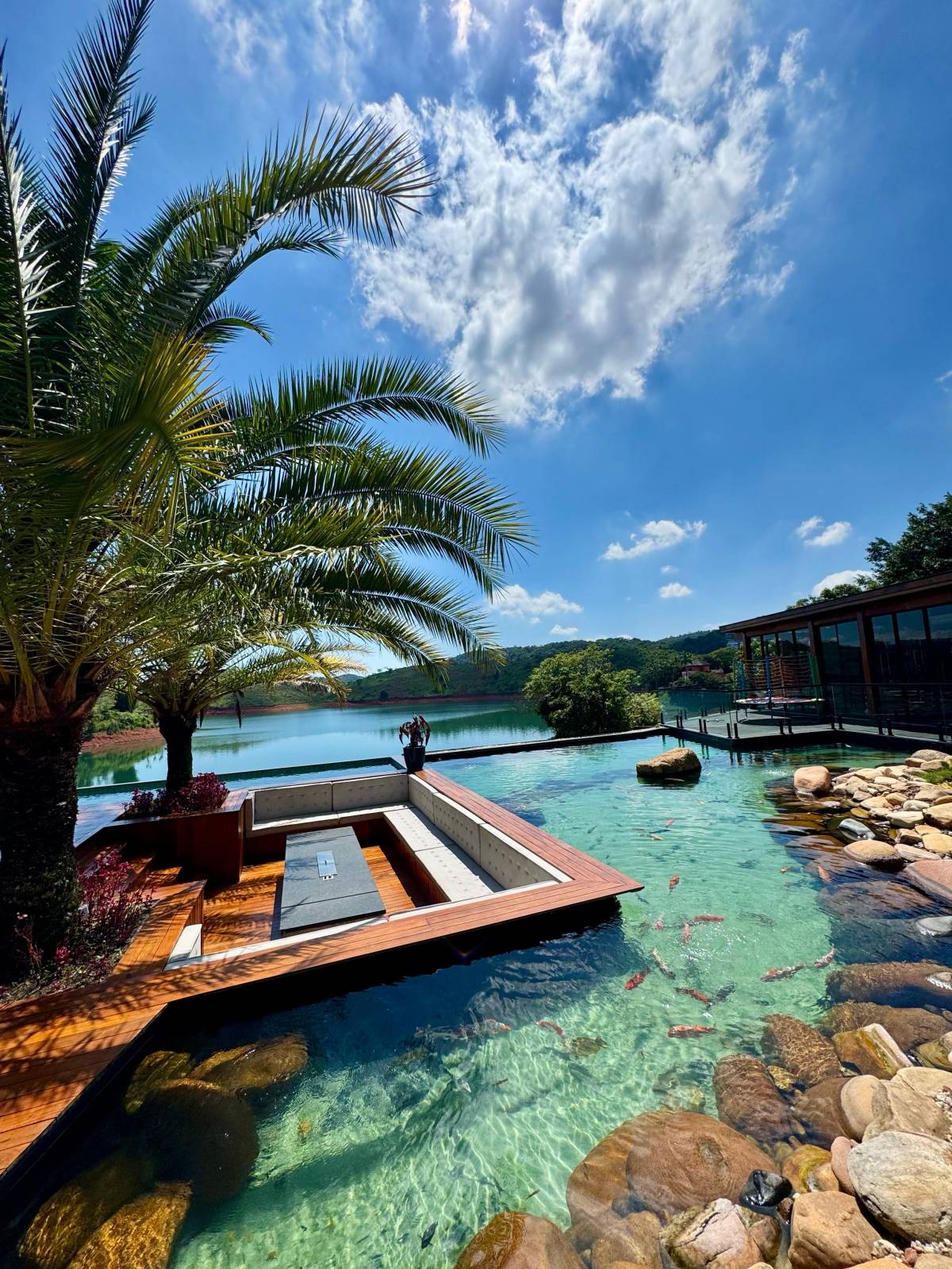 O lazer é garantido com piscina, SPA aquecido, lareira, sauna, academia completa com vista para a represa, playground e um lago ornamental. Para os amantes da náutica, a propriedade conta com um pier de 50 mª com sistema de som e uma garagem náutica.