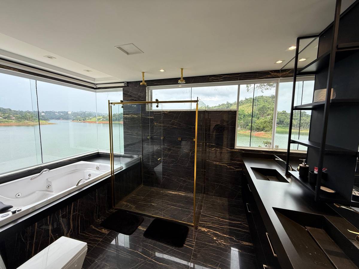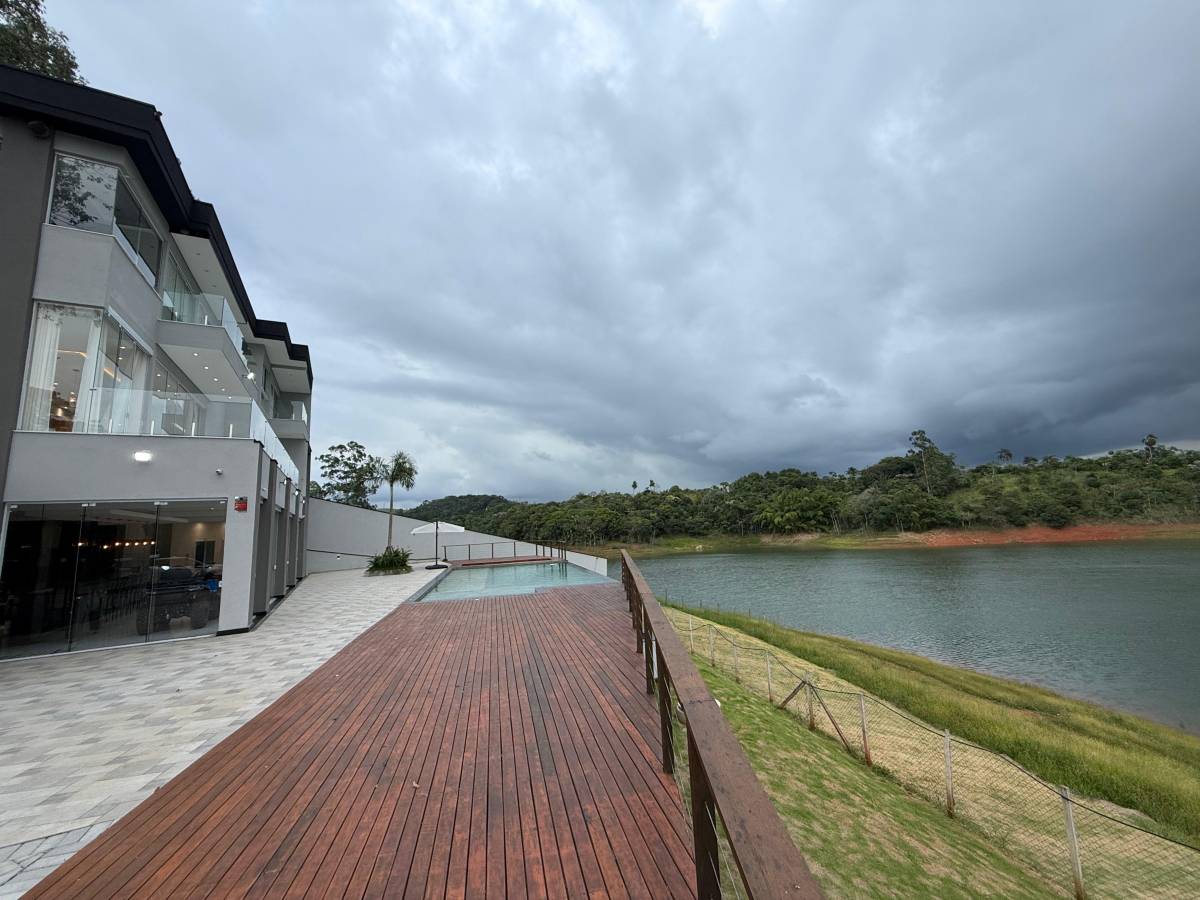 A área externa é um destaque à parte, com uma piscina de borda infinita (12 x 24), deck de madeira tratada, píer flutuante e uma rampa pavimentada em concreto reforçado para acesso à represa.