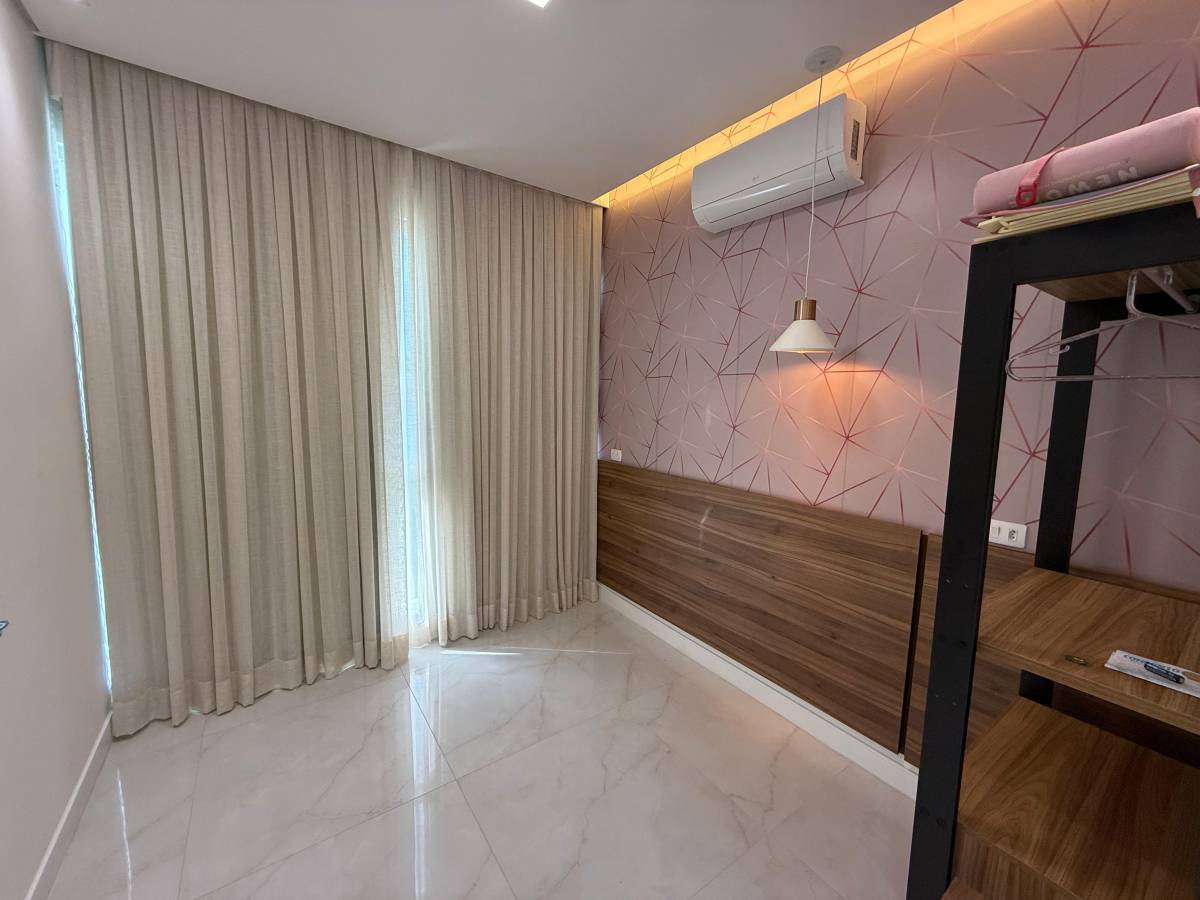 No pavimento intermediário, você encontra salas amplas e integradas, incluindo sala de TV, estar e jantar, além de uma cozinha espaçosa, já equipada com eletrodomésticos de alta qualidade.