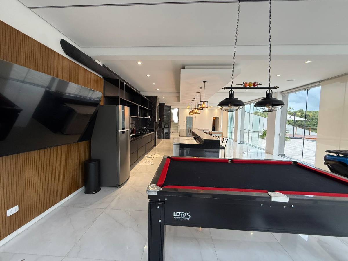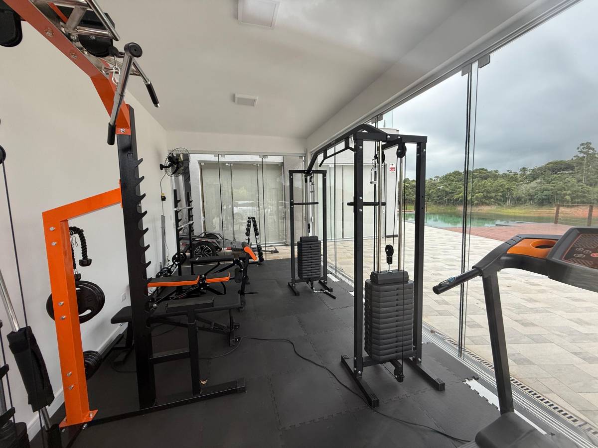 Com três pavimentos bem distribuídos, a casa conta com uma área gourmet completa no pavimento inferior, equipada com churrasqueira, forno e fogão, além de uma academia montada e vagas para até 10 carros.