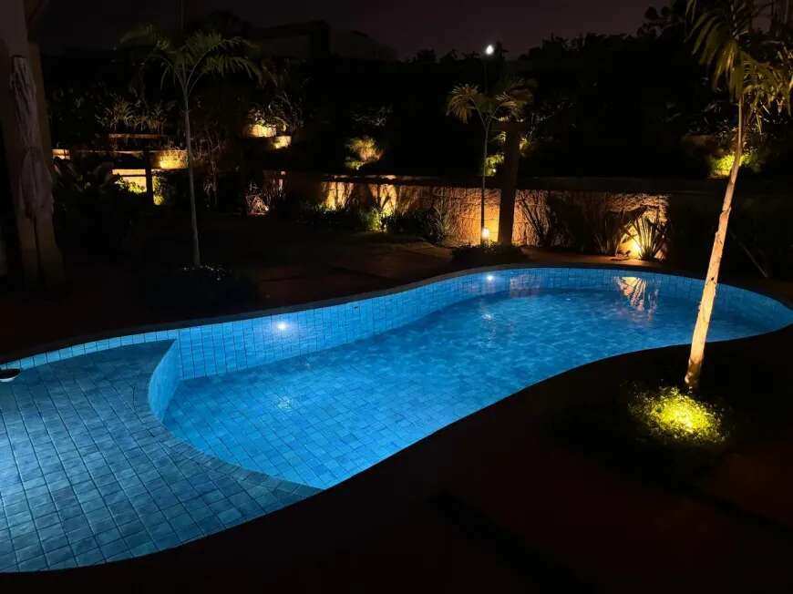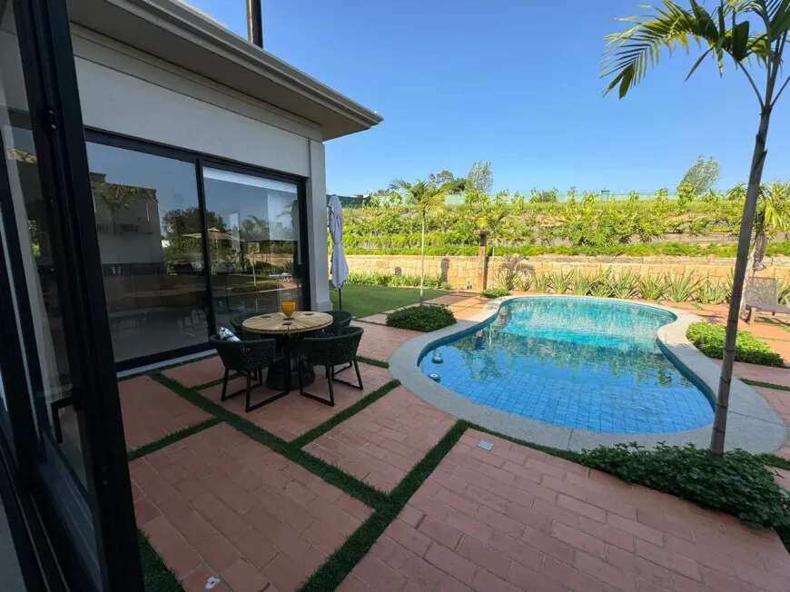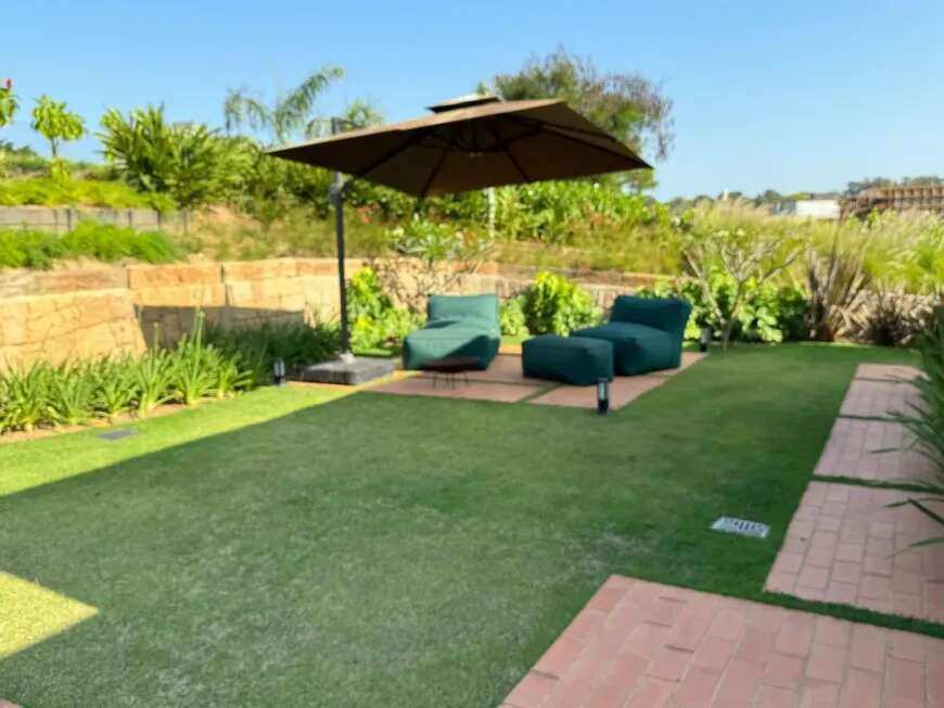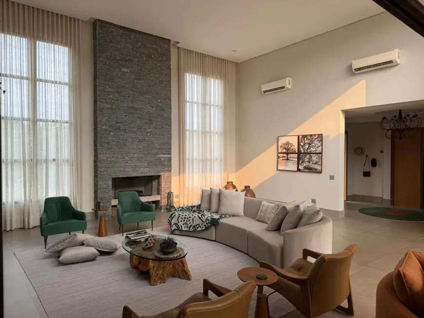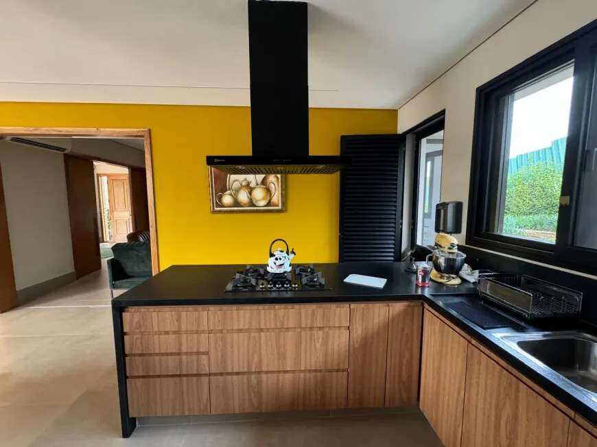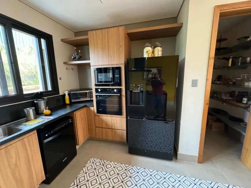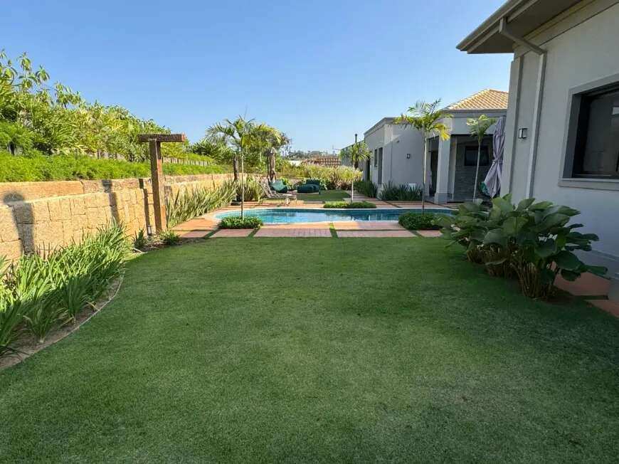 500m2 de área construída, 1.500m2 de terreno, térrea, com todos os espaços integrados, 5 suítes, sala de tv, academia, sauna, redário, piscina em formato orgânico, churrasqueira, forno de pizza, cozinha super equipada, espaço externo com gramado, praça com moveis e fogo de chão ecogarden, espreguiçadeiras, mesa e cadeiras corda náutica, horta orgânica, jardim de inverno em pedra, paisagismo, garagem para 6 carros com carregador para carro elétrico, acabamento em alto padrão, painéis fotovoltaicos, placas solares para aquecimento, lavanderia completa, repleta de armários, totalmente mobiliada e climatizada, enfrente a mata nativa de preservação permanente e ao lago do condominio, ou seja, sem vizinhos na frente, rua arborizada e quadra sem passagem para outras áreas do condomínio, com muita privacidade.