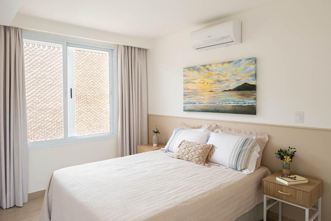 Apresentamos uma elegante casa, ideal para quem busca conforto e sofisticação a poucos passos da praia. Com quatro suítes no andar superior e um quarto adicional com banheiro no térreo, este imóvel foi projetado pensando na comodidade e privacidade de seus ocupantes. Todos os quartos estão equipados com ar condicionado para garantir seu conforto em todas as estações.