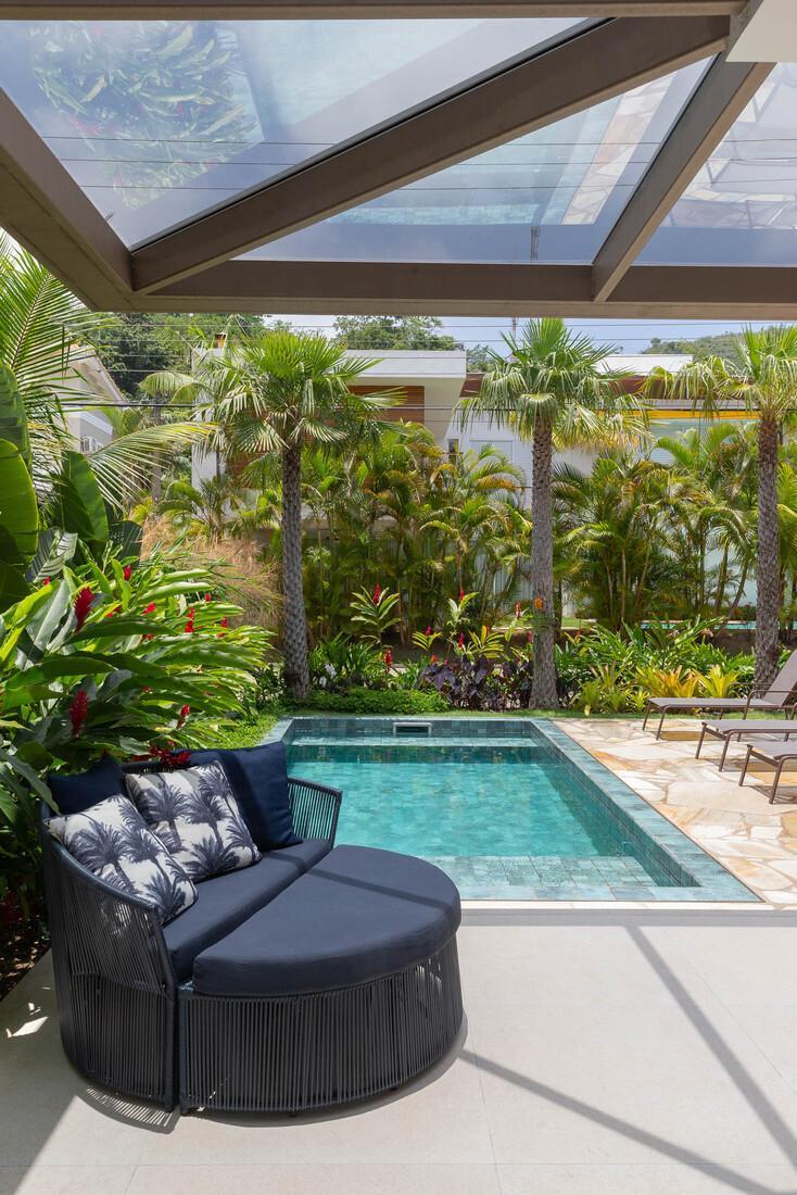 A área externa é um convite ao lazer, com churrasqueira, forno de pizza, piscina aquecida, redes e um jardim bem cuidado, proporcionando um ambiente perfeito para relaxar e desfrutar do clima agradável. Além disso, o condomínio oferece uma infraestrutura completa com quadra de tênis, piscina, campo de futebol e segurança 24 horas, incluindo ronda.
