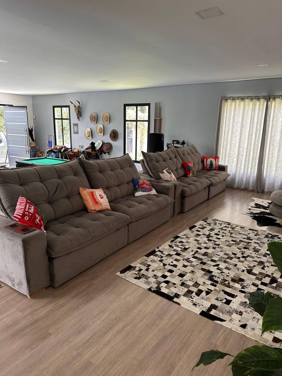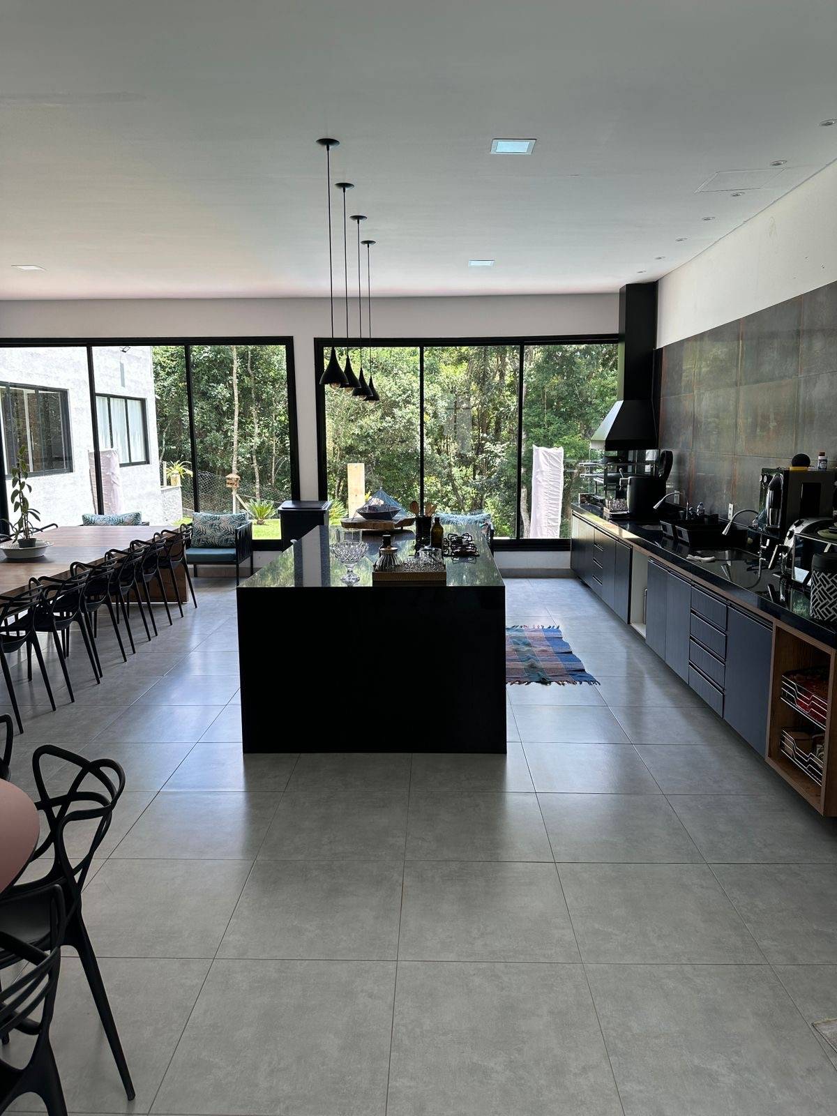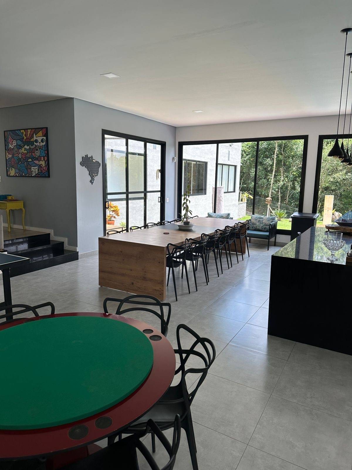 Casa térrea com ampla área de lazer 4 suítes com ar condicionado quente/frio, Loft totalmente integrado com mais de 100 metros quadrados com cozinha, ilha, sala de tv e lareira, sala de jogos e sala de jantar no mesmo ambiente, área de serviço,piscina com borda infinita, com por do sol incrível, sauna, pomar formado, quintal, chácara cercada, garagem para 6 carros ou mais,