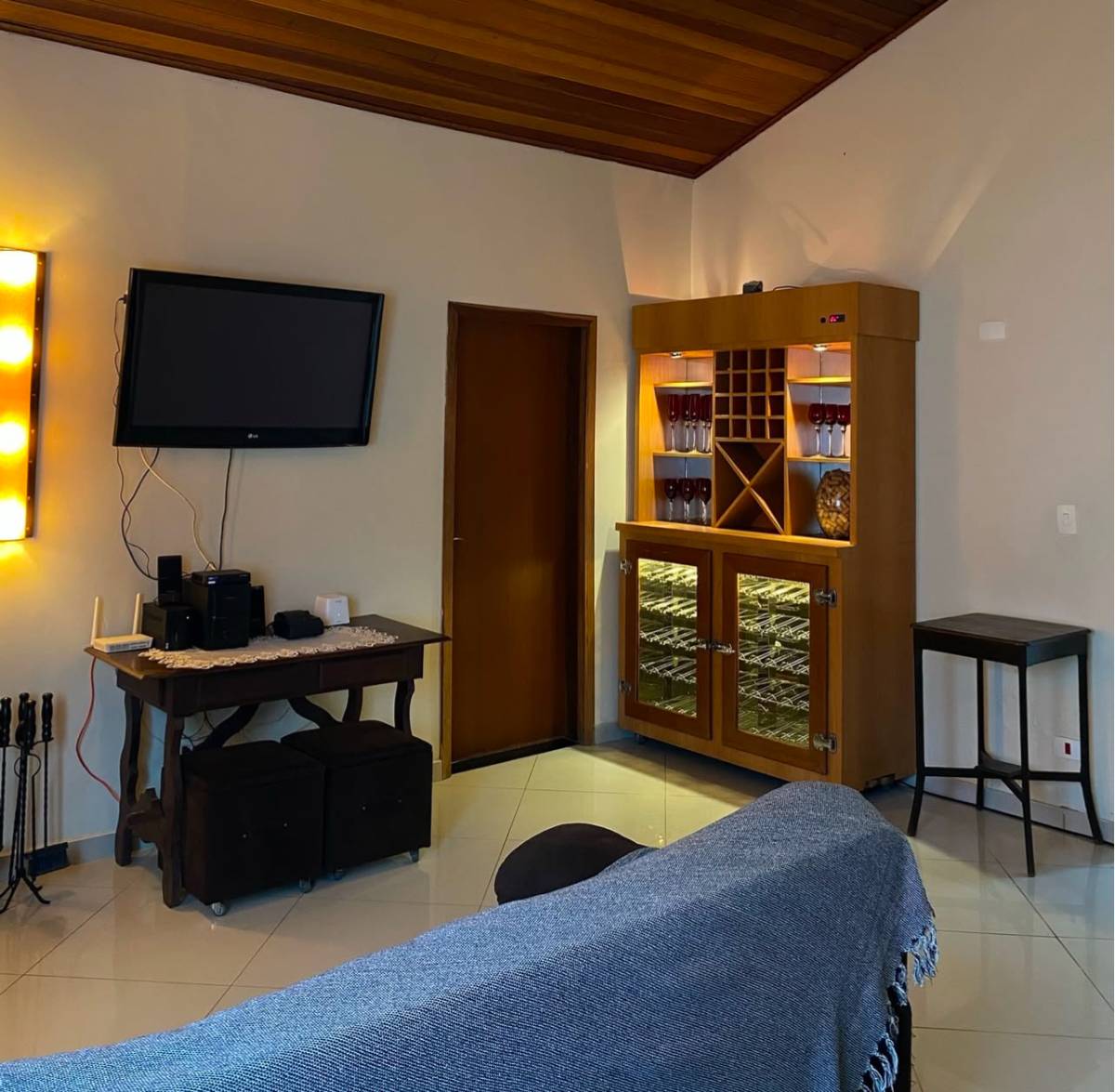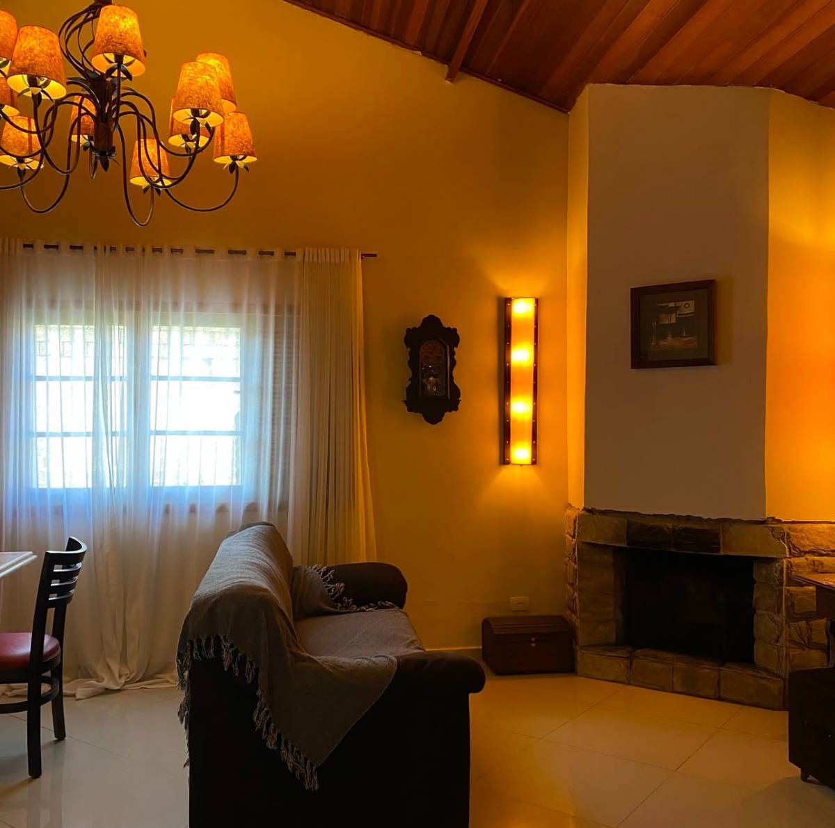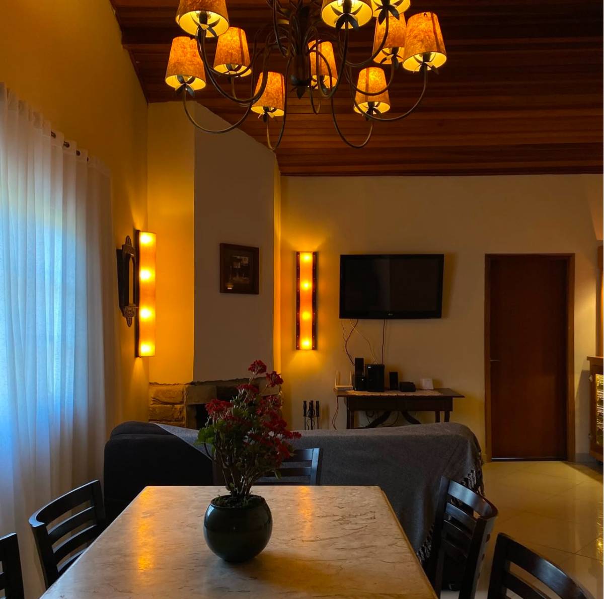 Sala de estar / jantar com lareira e ar condicionado. e uma adega climatizada.