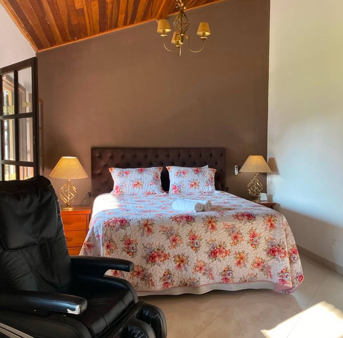 Suíte com banheira de hidromassagem.