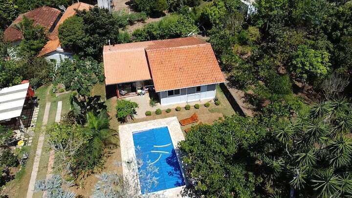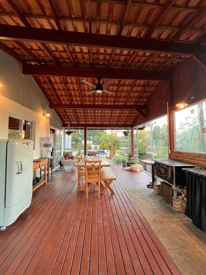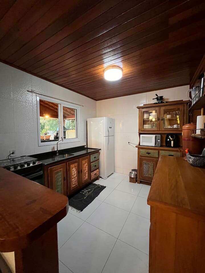 casa mista de madeira de lei e alvenaria, 2 Dormitórios, sendo 1 suíte, Sala, Cozinha, Banheiro área de serviço, placas de energia solar, piscina aquecida 7x3,5, area do terreno maior que 2.000 M2 , Salão com área gourmet medindo 100 M2, pomar produzindo, laranja ponkan, manga, abacate, Horta e lindo bosque planejado com paisagismo perfeito…