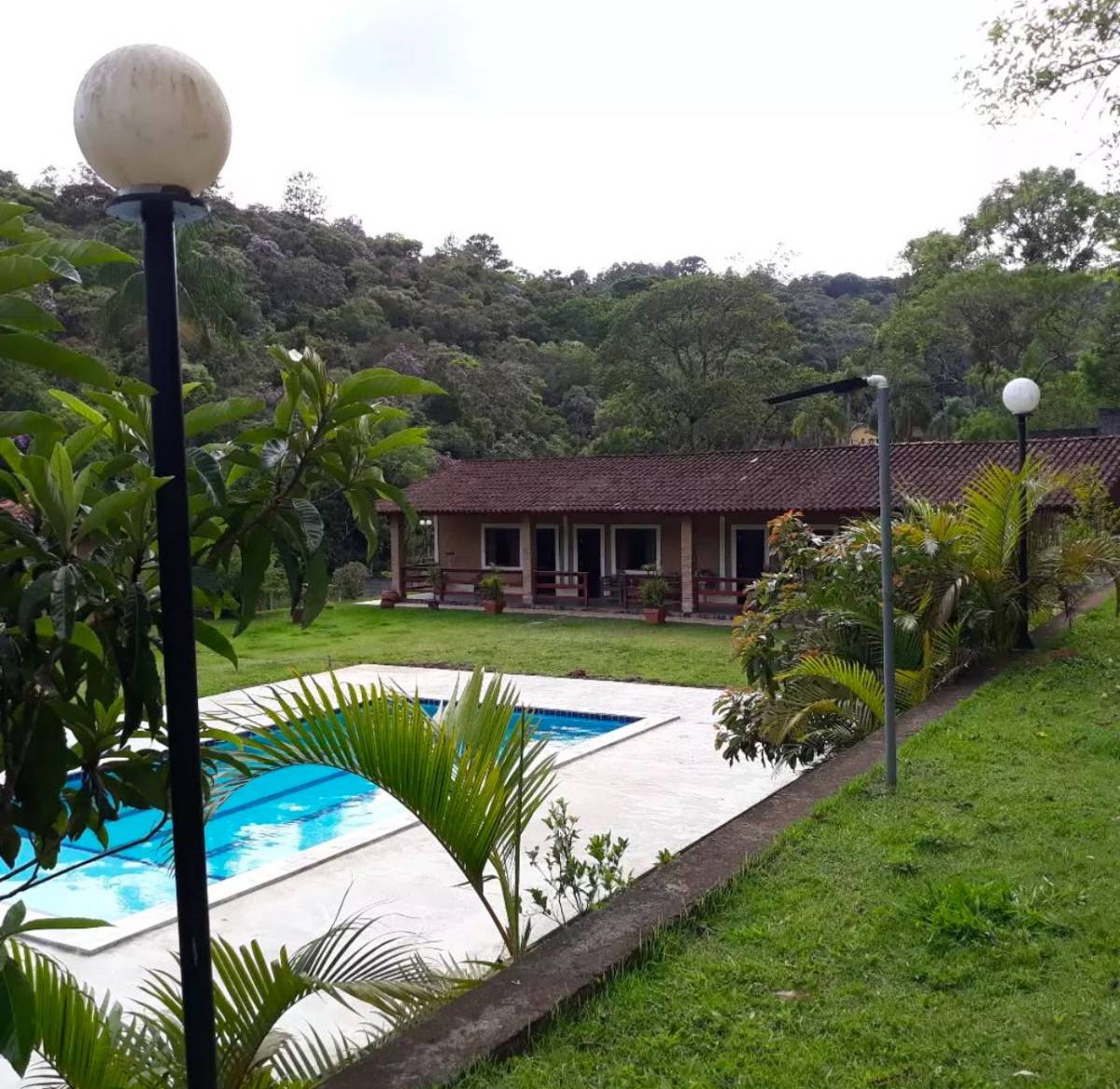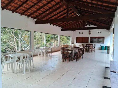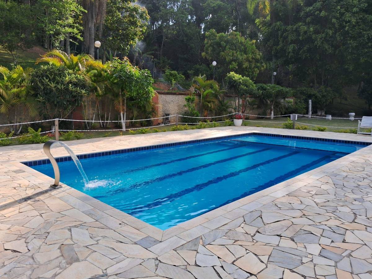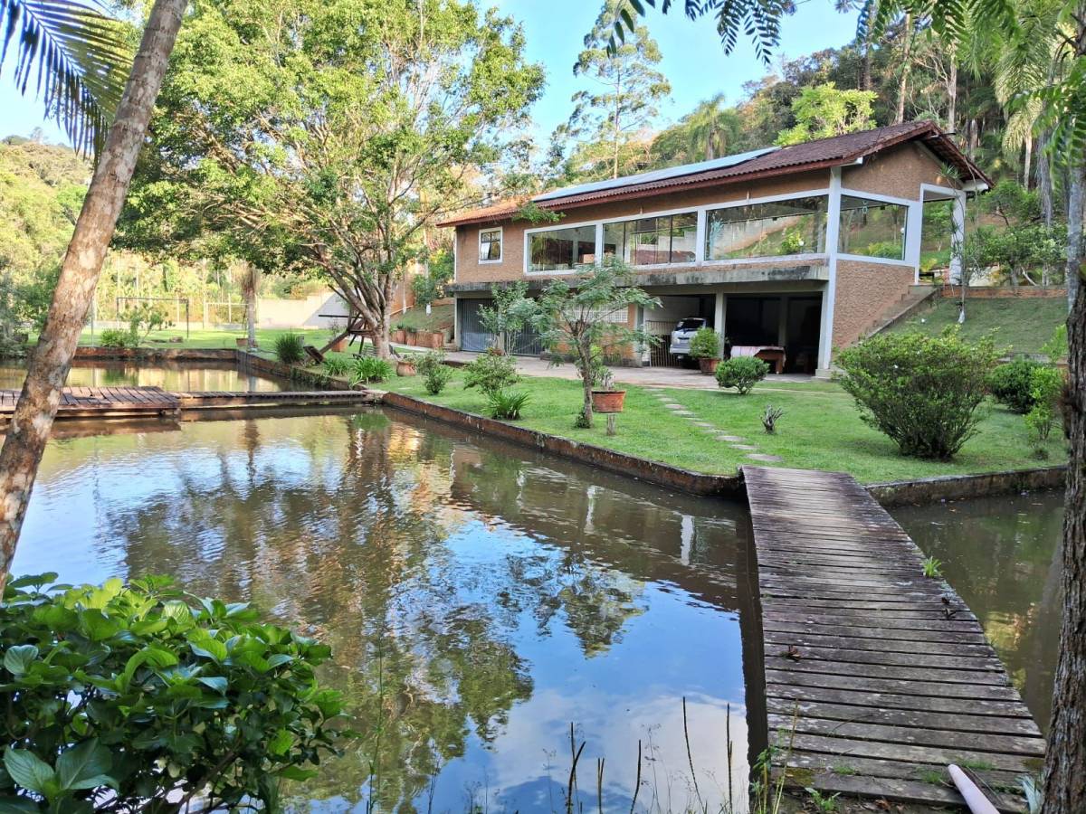 Com 15 mil metros quadrados. Possui dois lagos com peixes, piscina novinha (10X5), energia solar, Internet, salão de festas, duas belas cozinhas, três suítes, 4 garagens cobertas, estacionamento para 30 carros, 5 banheiros...