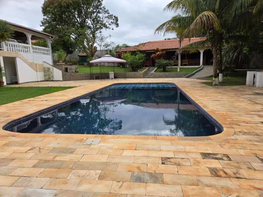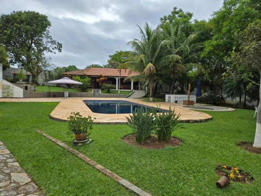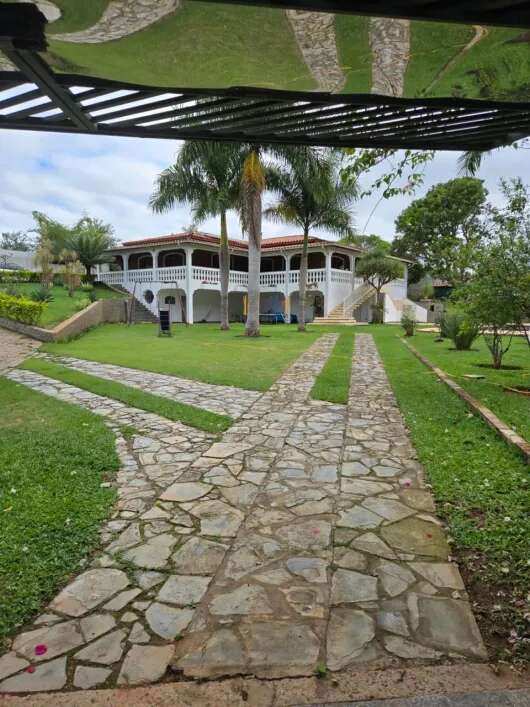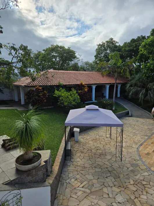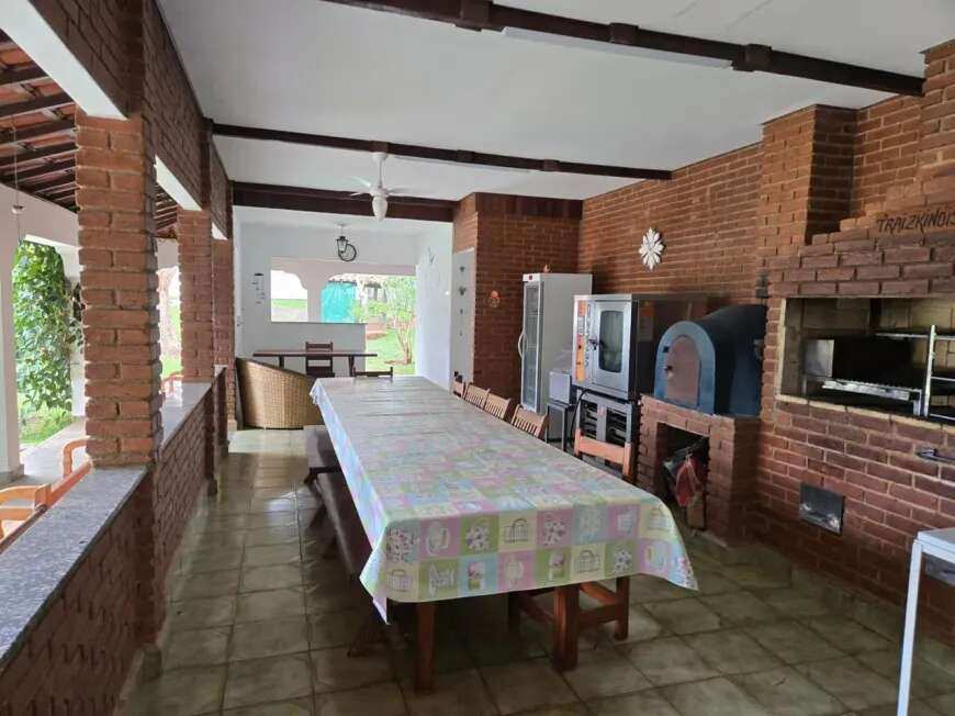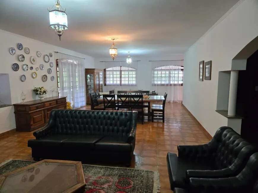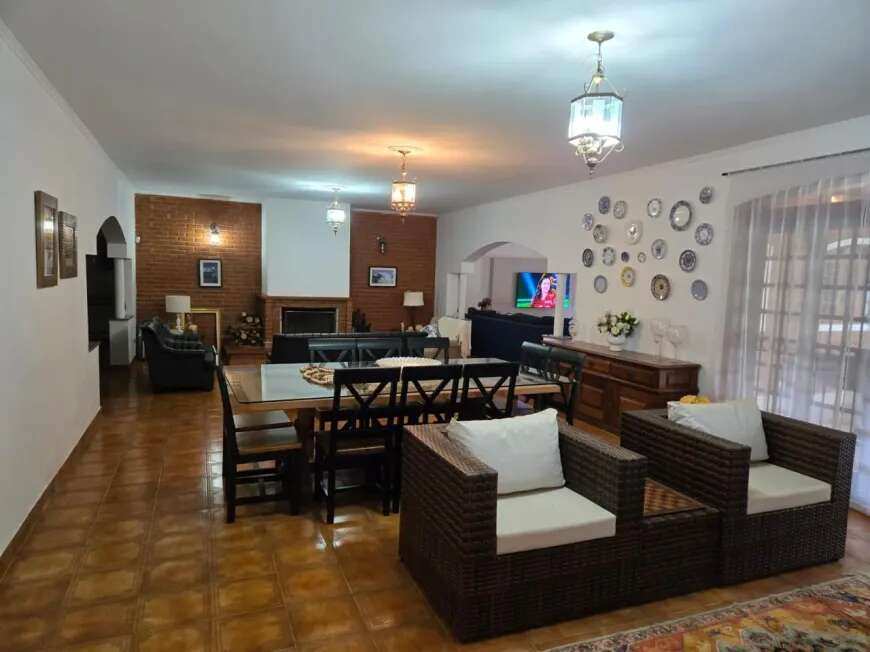 casa sede 04 dormitórios sendo 02 suíte, sala ampla para ambientes sendo sala com lareira, sala de estar, sala de jantar e sala intima, cozinha ampla com armários, casa toda avarandada, garagem coberta para 06 autos e mais 40 vagas descobertas, piscina aquecida em alvenaria projeto moderno, churrasqueira ampla completa, casa de hospede com 02 dormitórios, pomar, localização privilegiada.