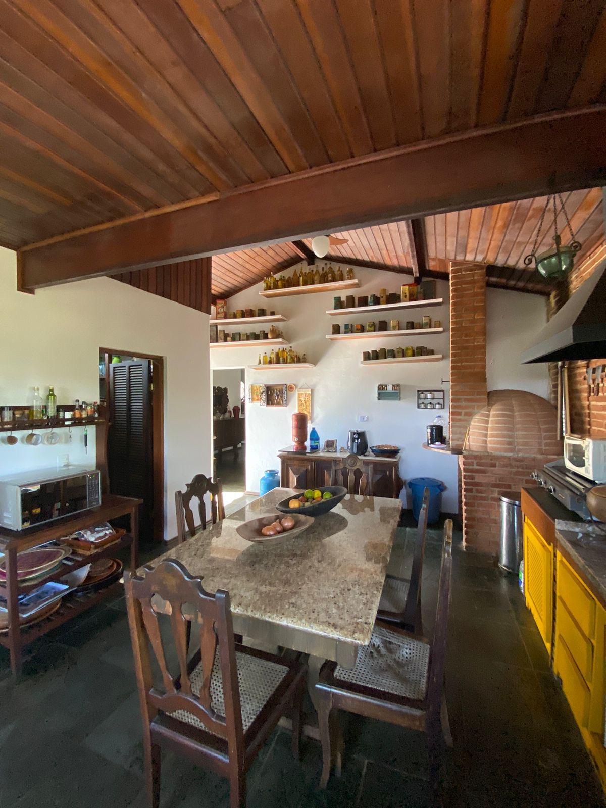 Casa de campo com 5 suítes, sala de estar, jantar e visitas, home teather, 02 lavabos, adega subterrânea, cozinha, dispensa, lavanderia, varanda em vários ambientes, garagem coberta para 03 carros, quarto de ferramentas, 03 cômodos grandes no piso inferior da casa, piscina, churrasqueira, salão, quadra de tênis, campo de futebol, canil, casa de caseiro com 02 dormitórios e muita área verde.