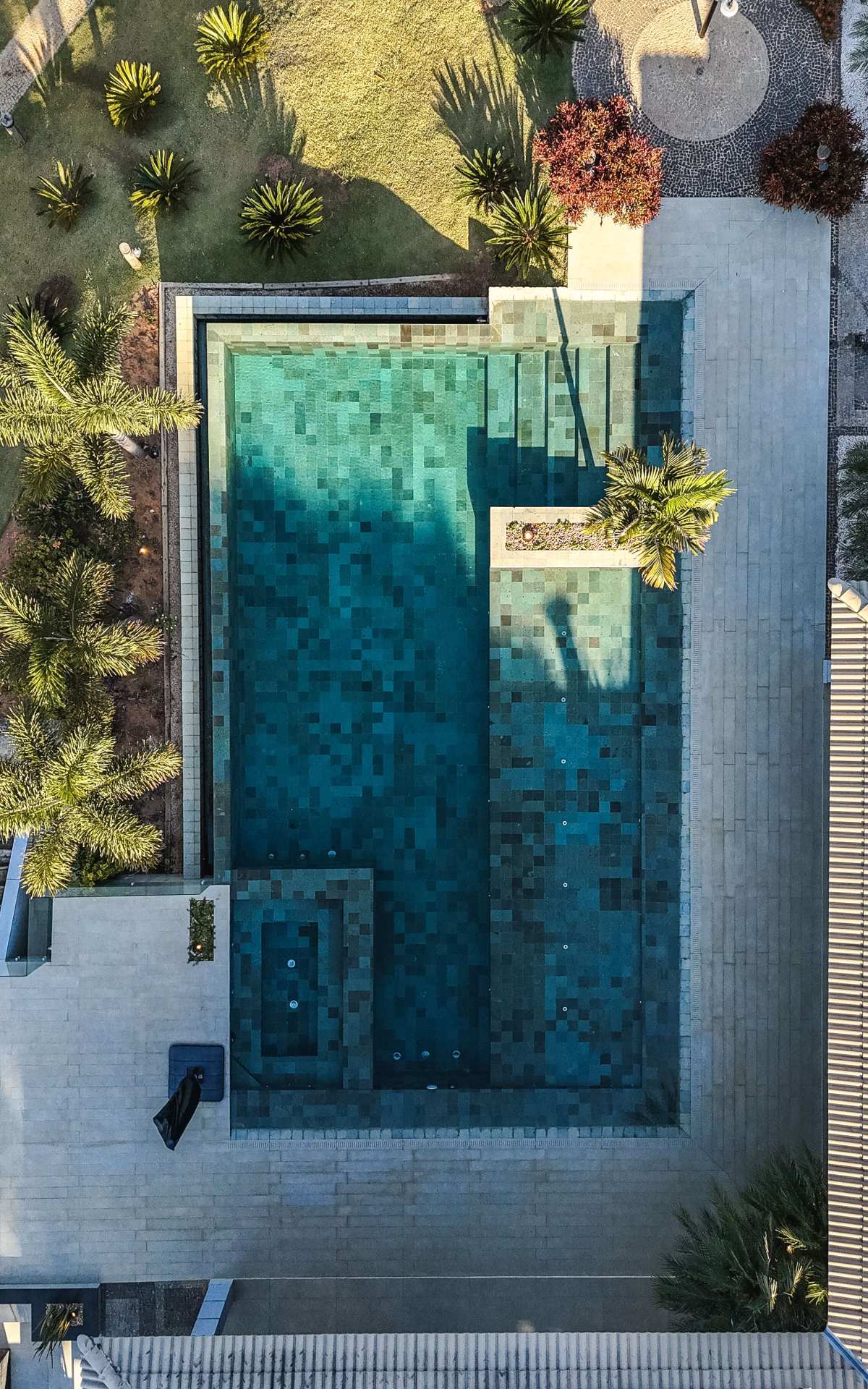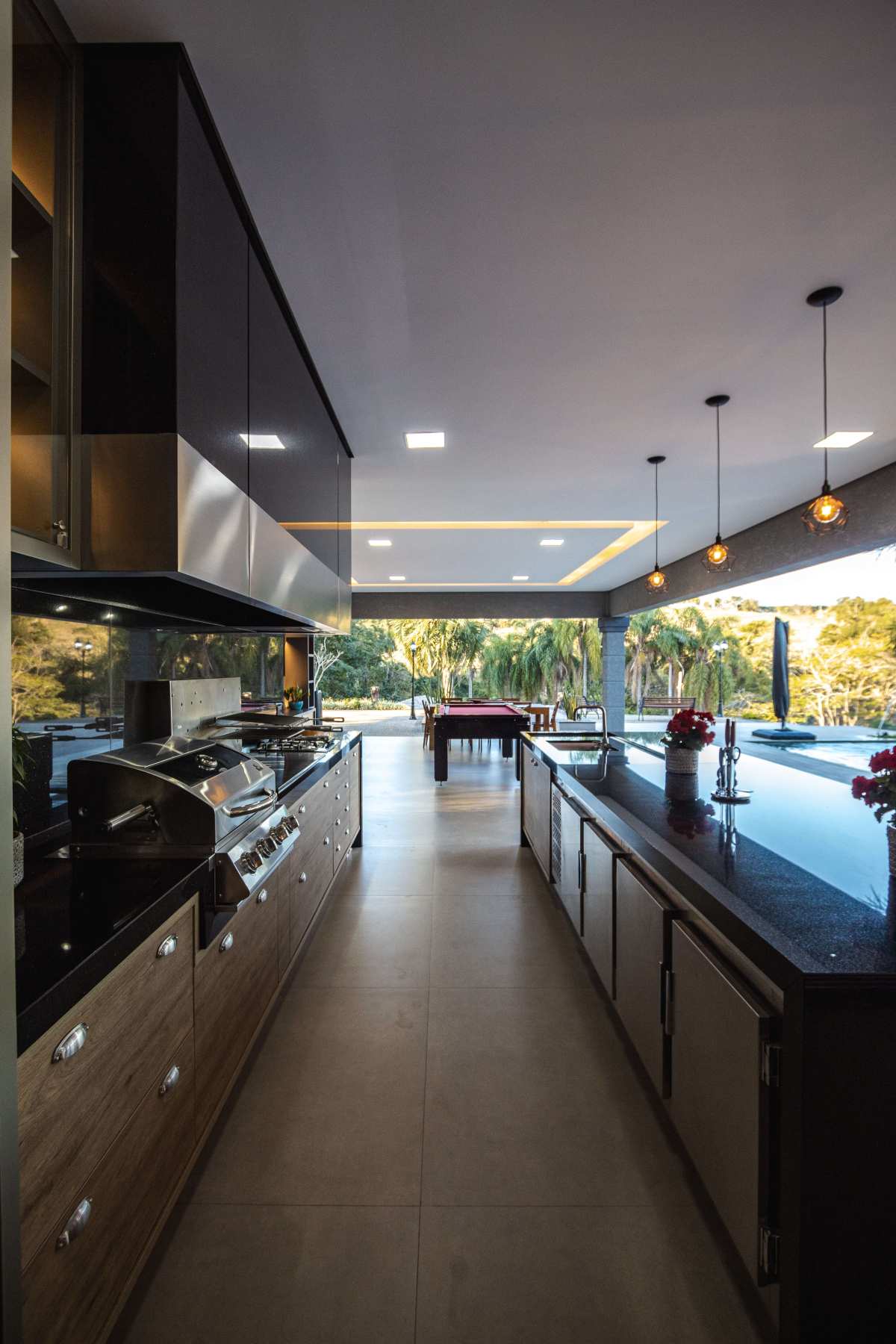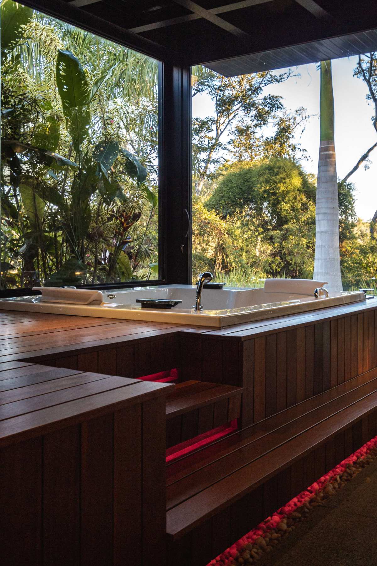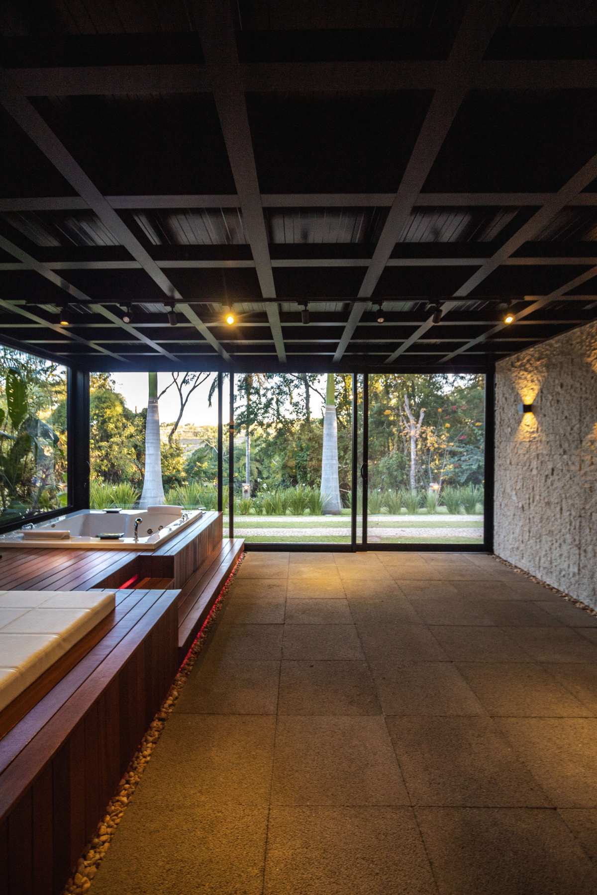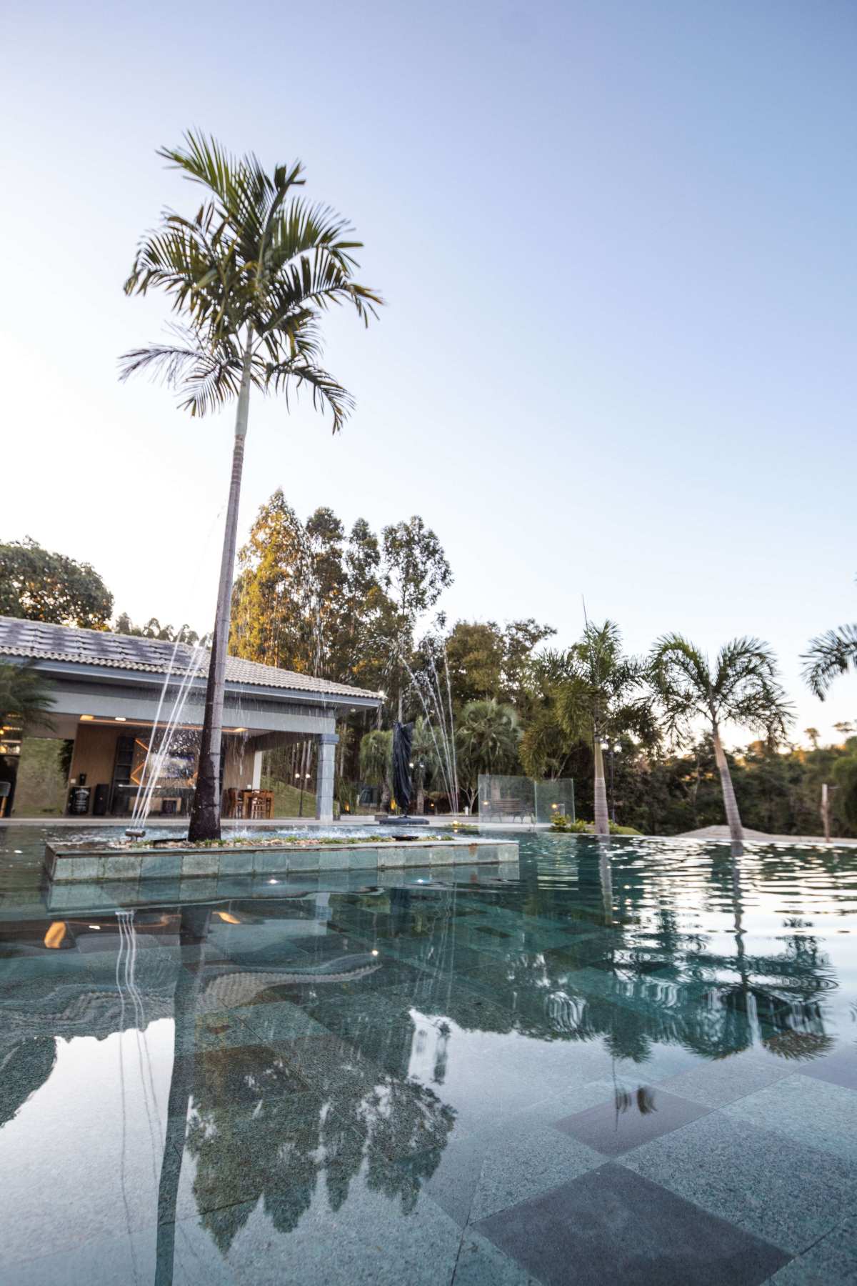 - Spa que se integra à piscina borda infinita com cascata;