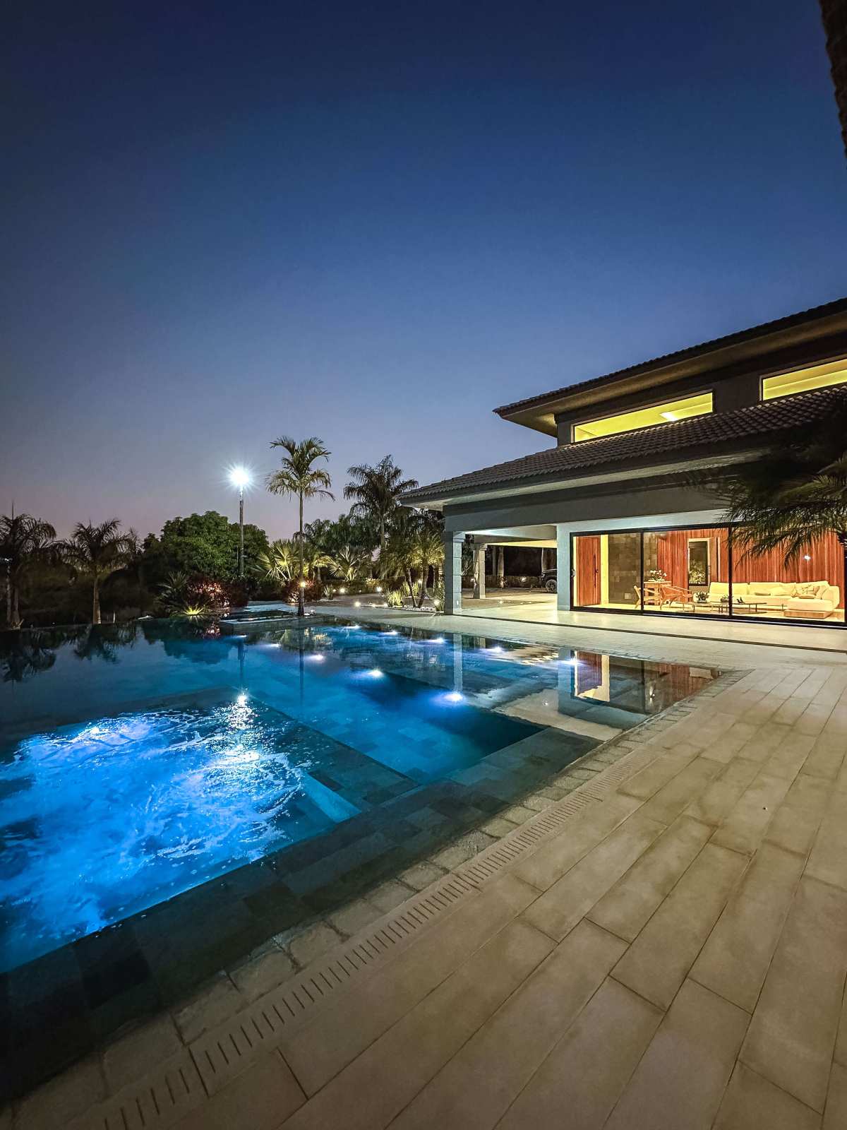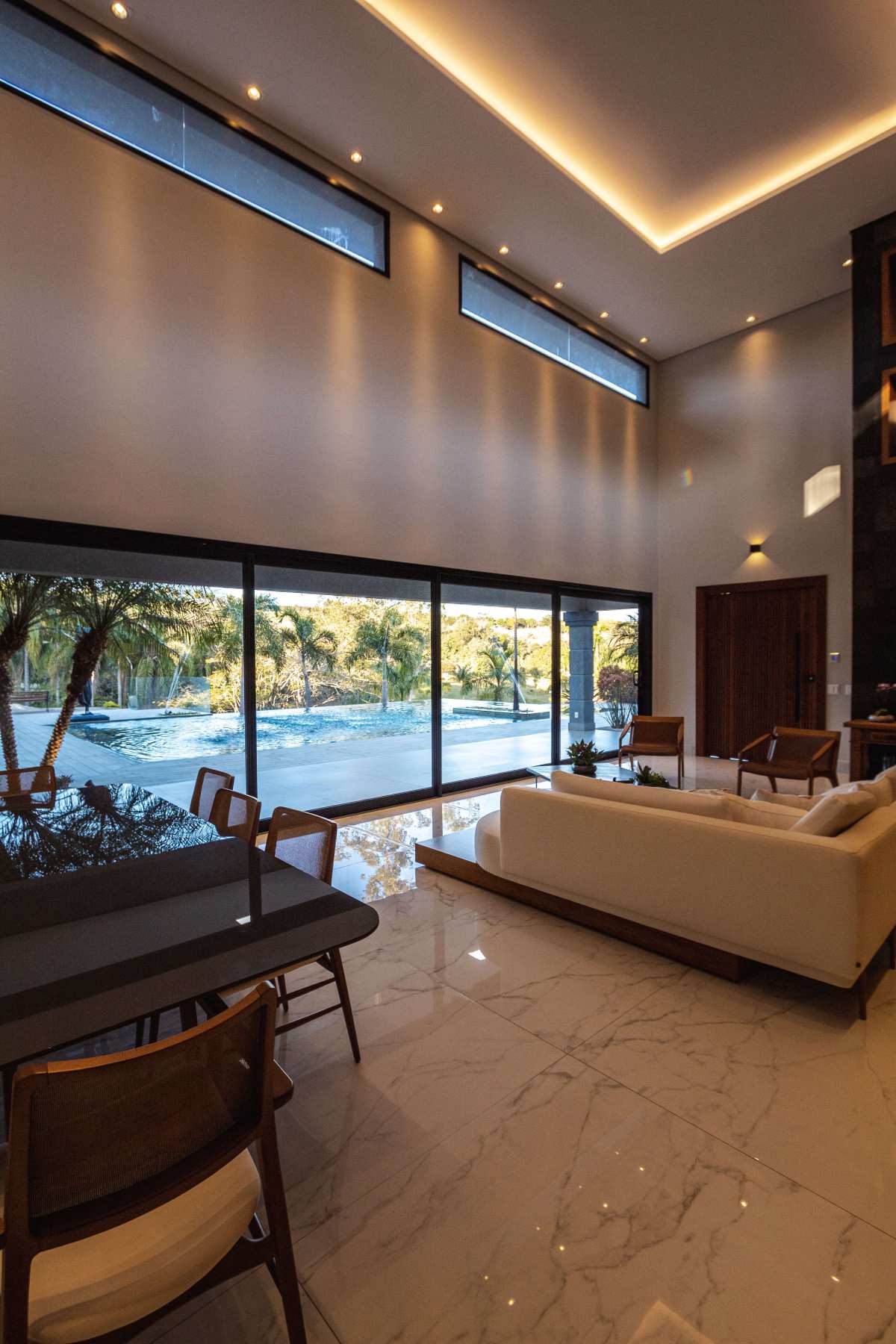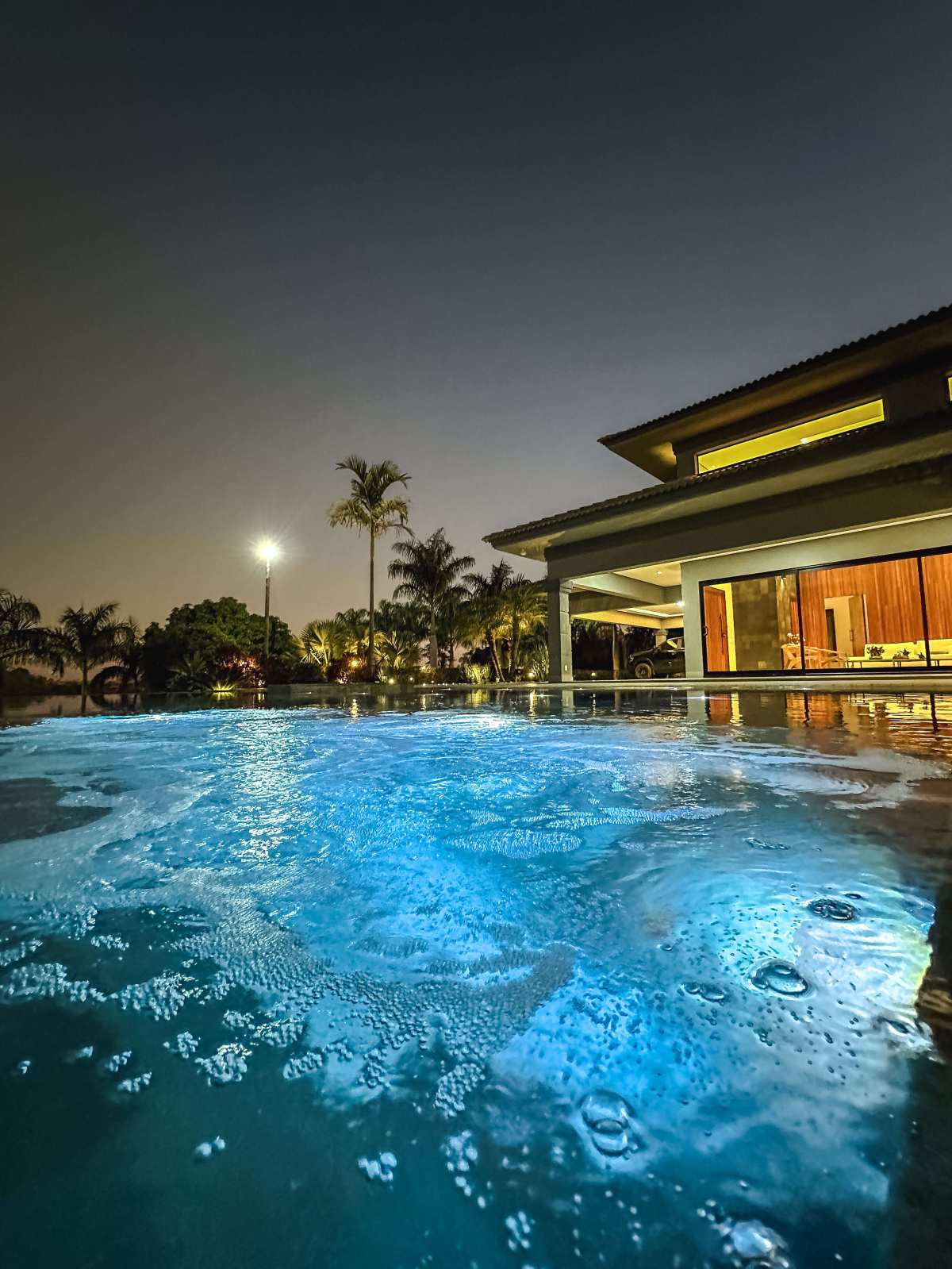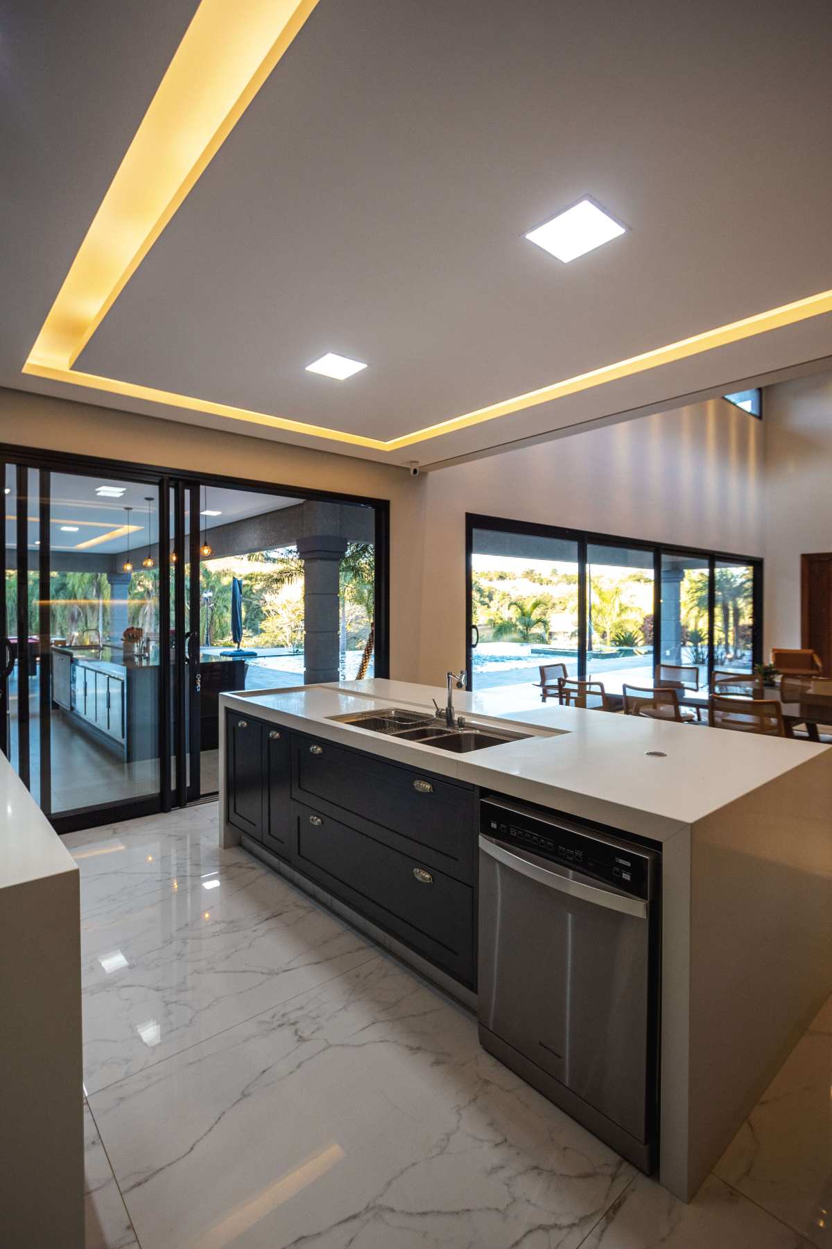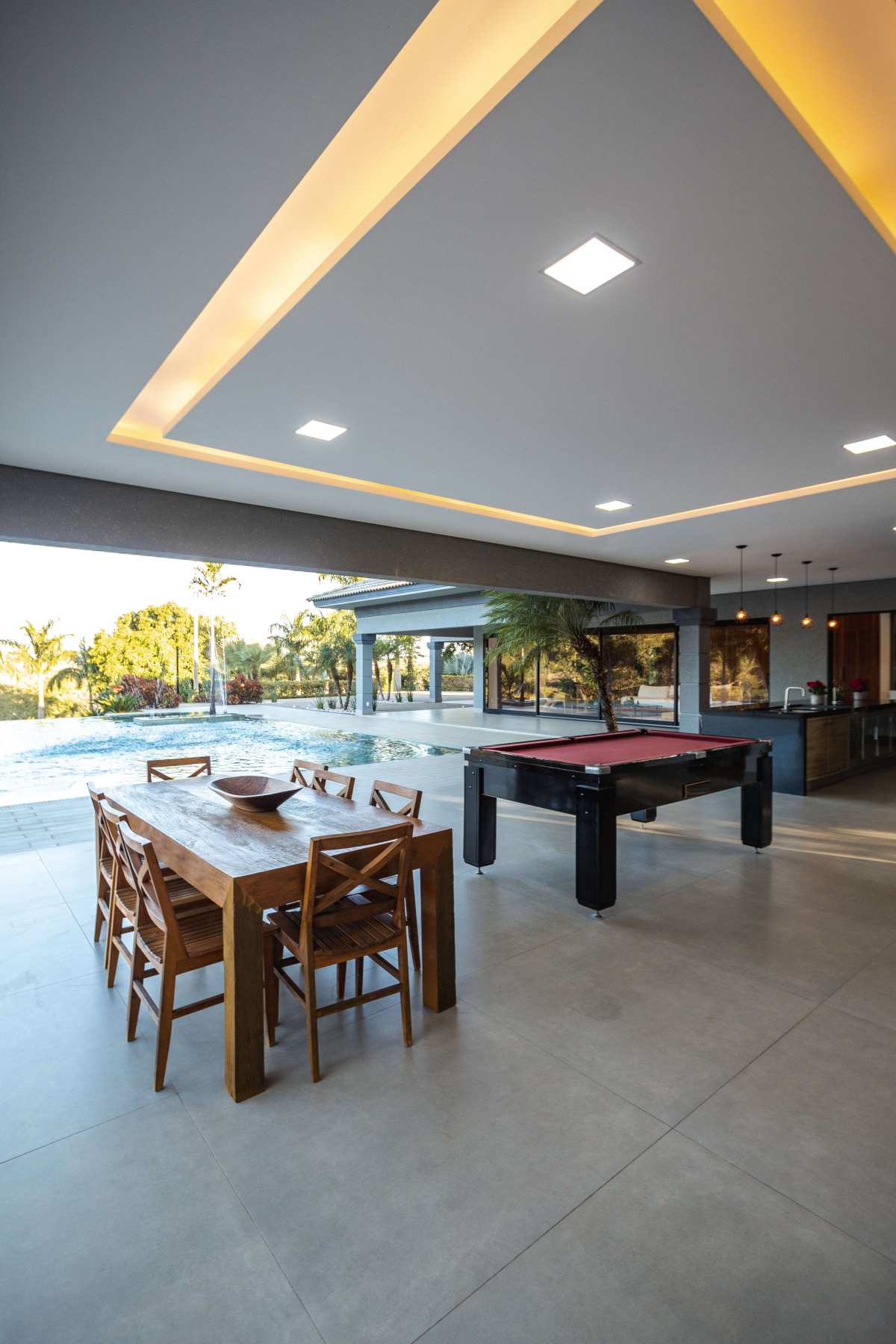 - Spa que se integra à piscina borda infinita com cascata;