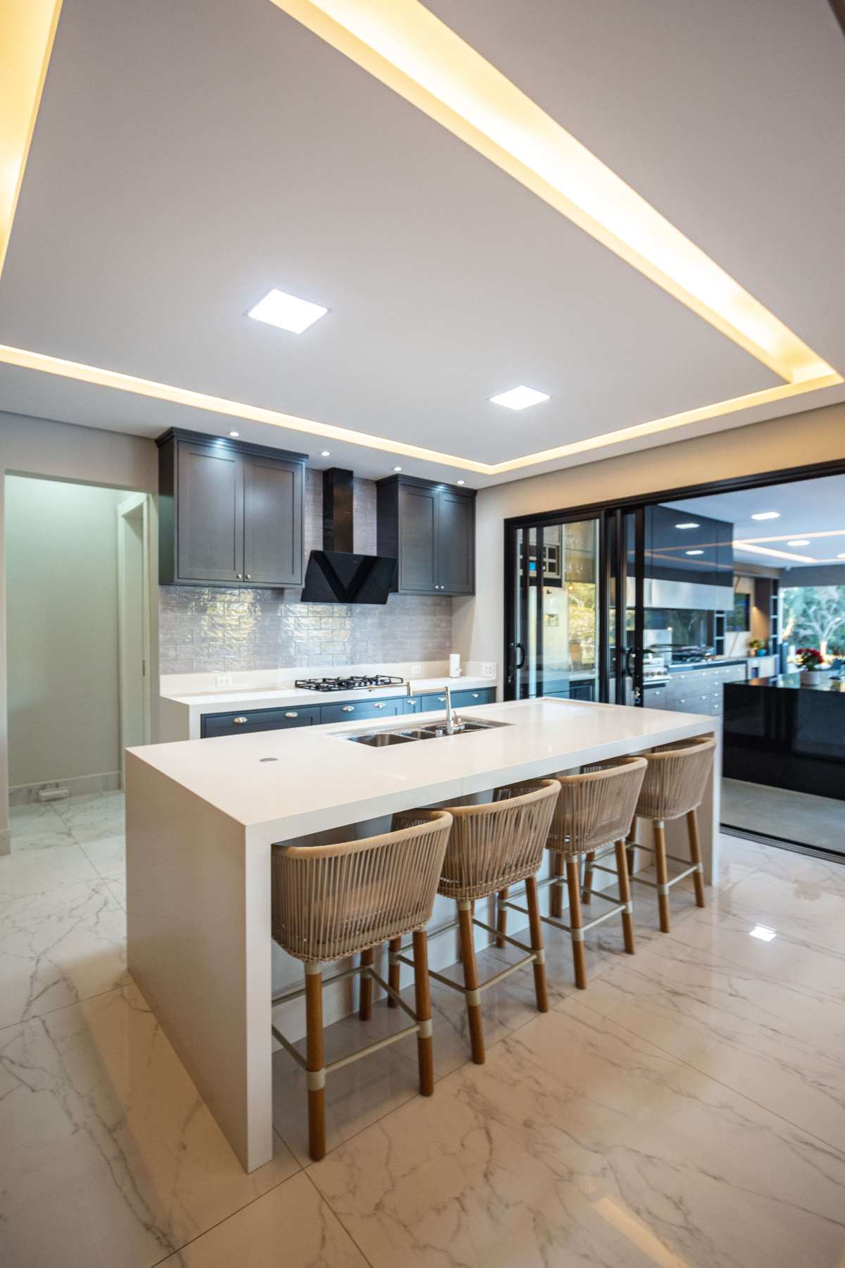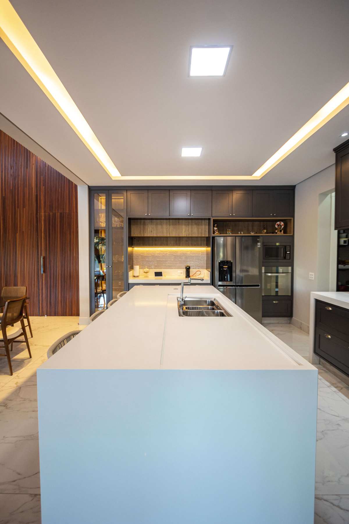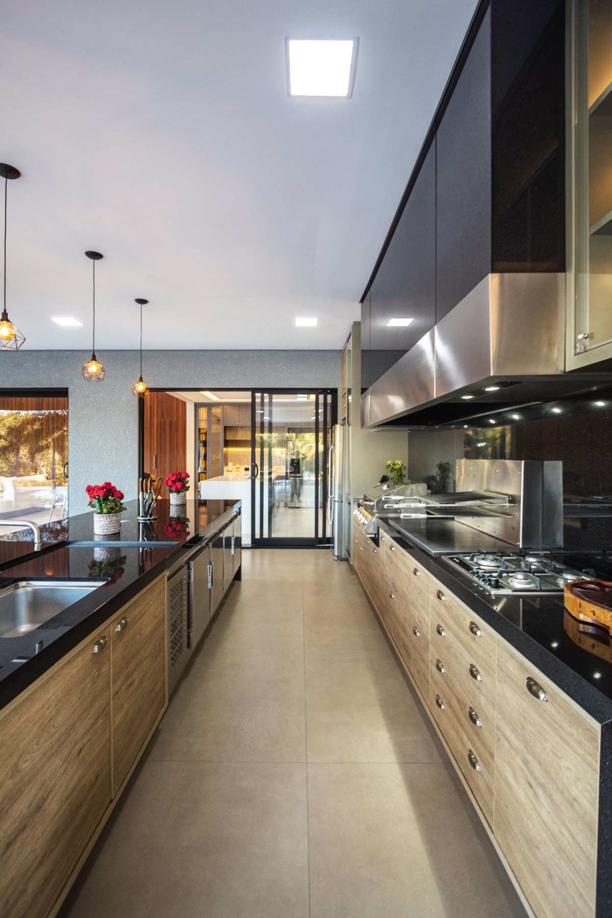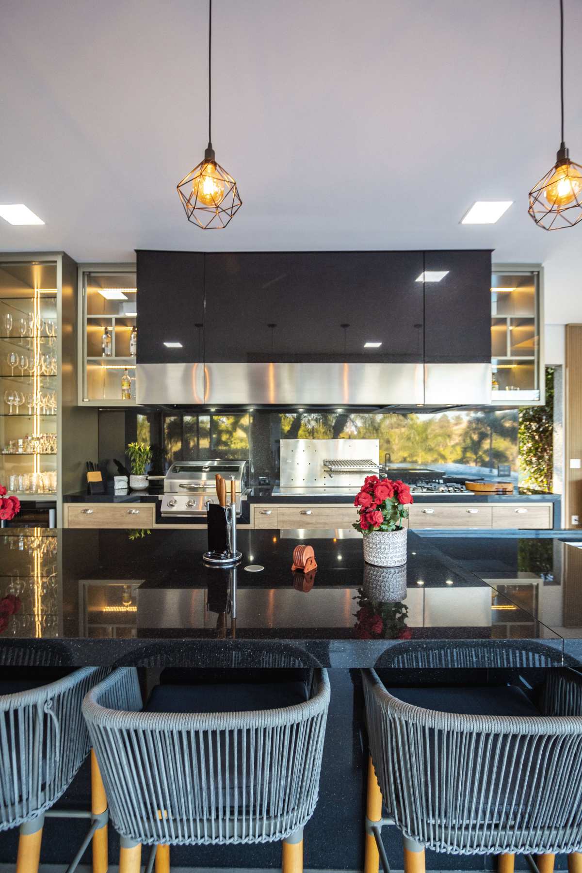 - Área gourmet com balcão refrigerado, bar, chopeira e churaqueira carvão e a gás;