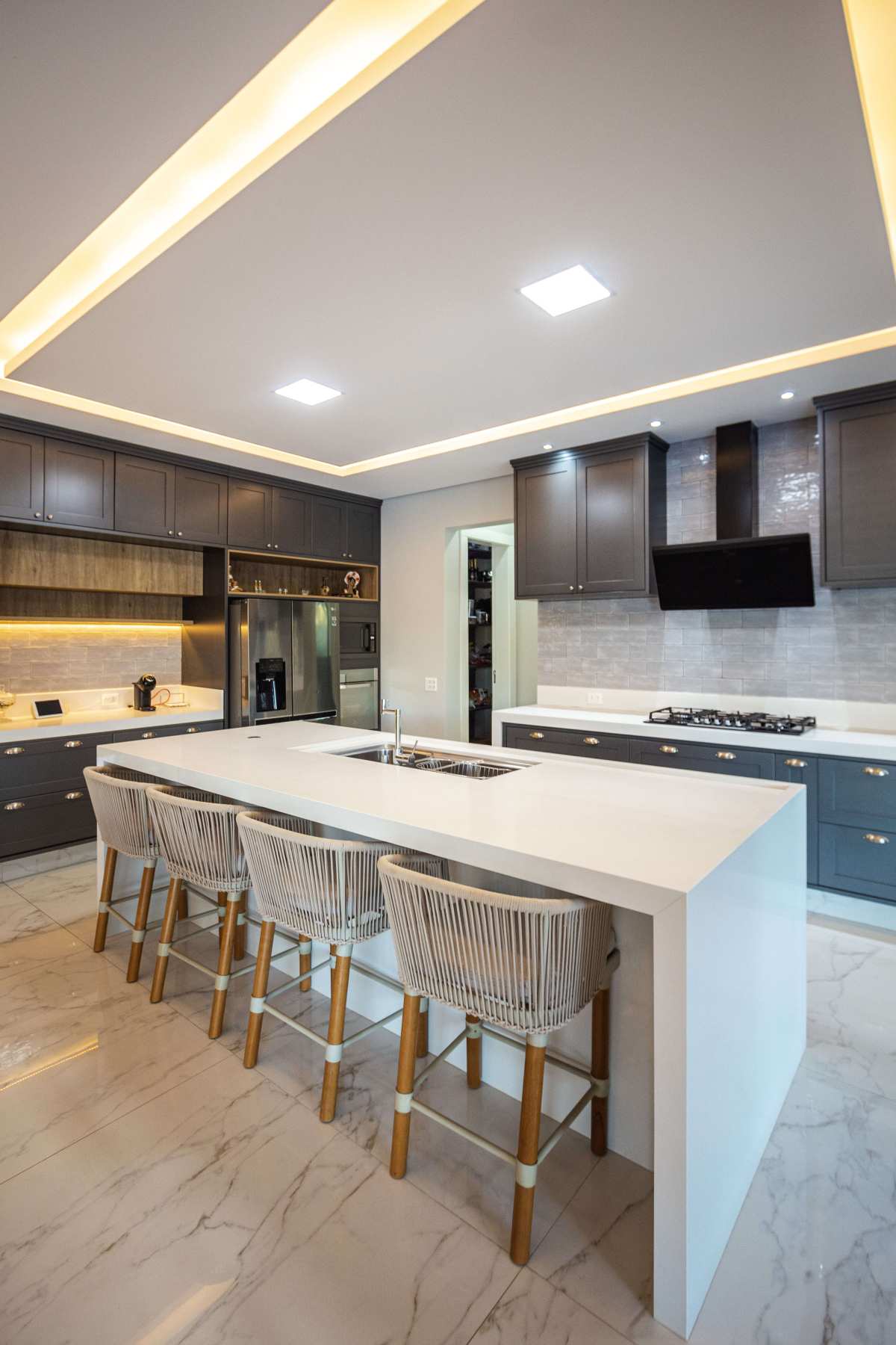 Casa Sede Moderna com 4 suítes, todas com closets espaçosos, a suíte master com SPA e banheira de hidromassagem e jacuzzi dupla;