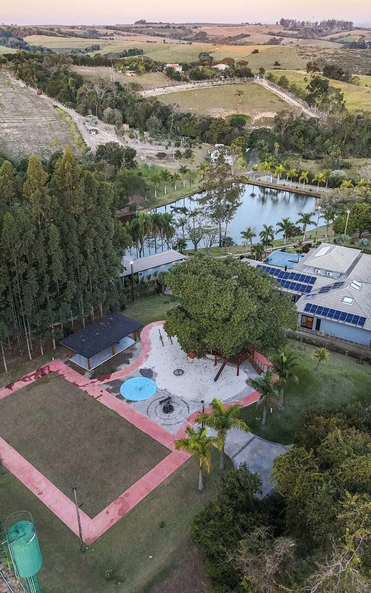 Sitio é totalmente autossustentável. Possui sistema fotovoltaico, o que permite que praticamente não haja custos com energia. A geração de energia é toda por meio desse sistema. O poço artesiano também é suficiente para suprir toda a propriedade, que possui 100 mil metros quadrados, tanto para consumo quanto para a manutenção do sítio.o poço tem uma vazão de 14 mil litros por hora. Portanto, é bastante adequado no abastecimento.